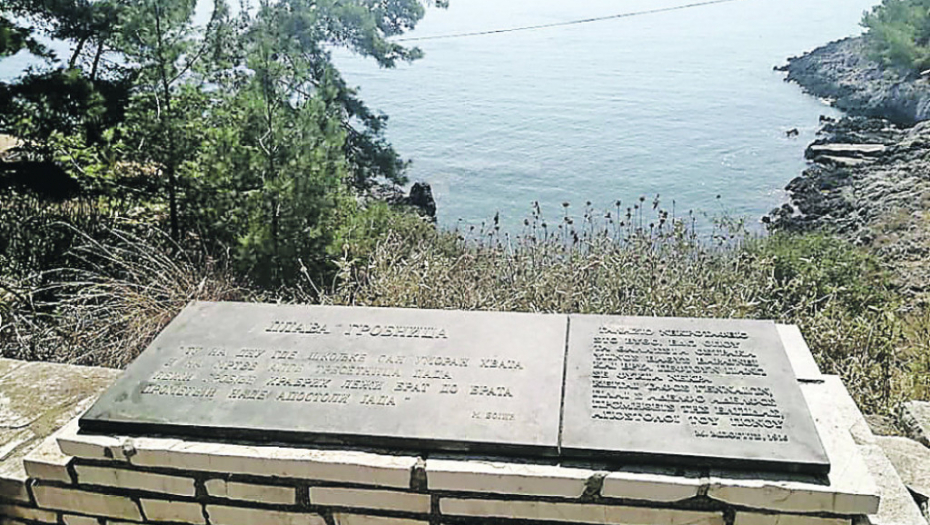 Razdaljina od Krfa i Vida prelazi se za desetak minuta, svi ćute. U tišini čamac pristaje do mesta do koga su pristizale lađe sa iznemoglim srpskim vojnicima i, nekoliko dana kasnije, odlazile na pučinu odvozeći umrle. Desno odatle ide se do belog mermernog spomenika, simbola anđela koji krilom dočekuje i ispraća brodove.