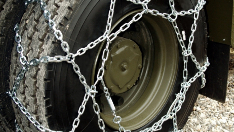 Kada se sneg nalazi na kolovozu, lanci se montiraju na pogonske točkove na onim saobraćajnicama gde je označena obavezna upotreba.
