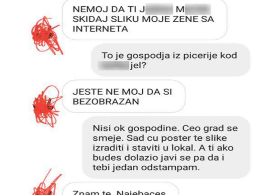 Kada je video prepisku u telefonu svoje partnerke, momak nije štedeo reči i uvrede na Nevenov račun, misleći verovatno da je on podstakao, kako je napisao, njegovu ženu, da mu šalje provokativne fotografije. Pored brojnih psovki i uvreda, muškarac je i otvoreno zapretio Nevenu, koji mu ipak nije ostao dužan, pošto mu je u jednom trenutku rekao da će od slika njegove žene napraviti poster koji će staviti u lokal, što je verovatno bila samo šala.