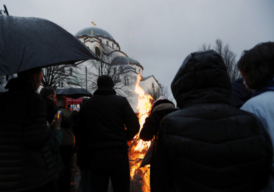 Tradicionalno paljenje badnjaka na Badnji dan organizovano je danas oko 16 časova ispred Hrama Svetog Save u prisustvu sveštenstva Srpske pravoslavne crkve (SPC) i vernika.