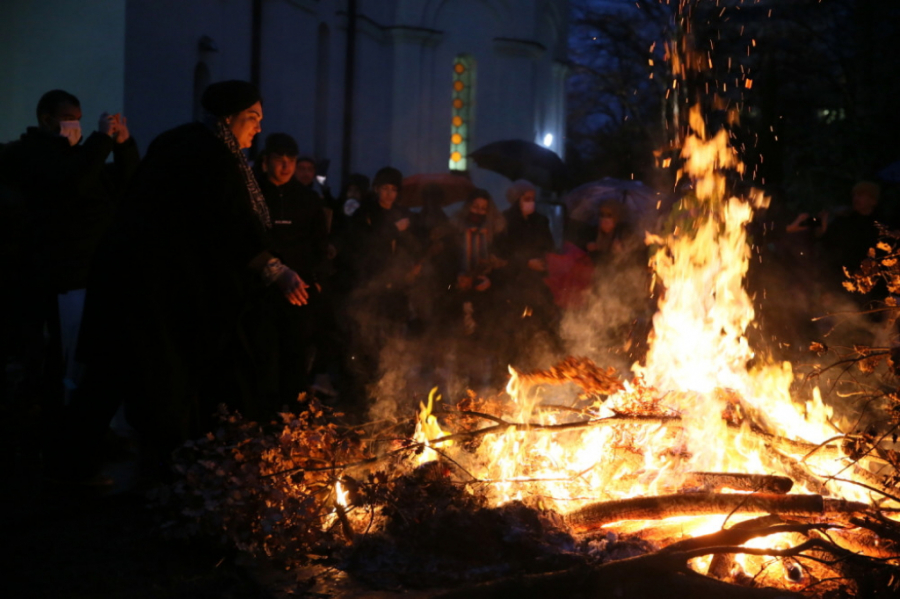 Badnjak je osveštao mitropolit dabrobosanski Hrizostom, koji posle smrti patrijarha Irineja predsedava Sinodu SPC.