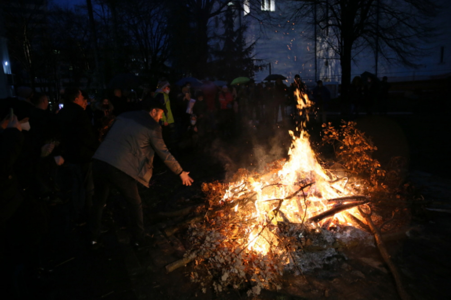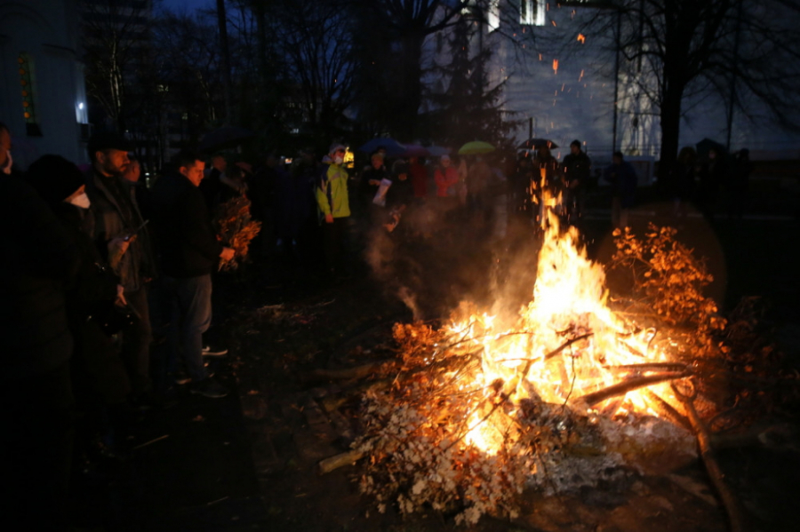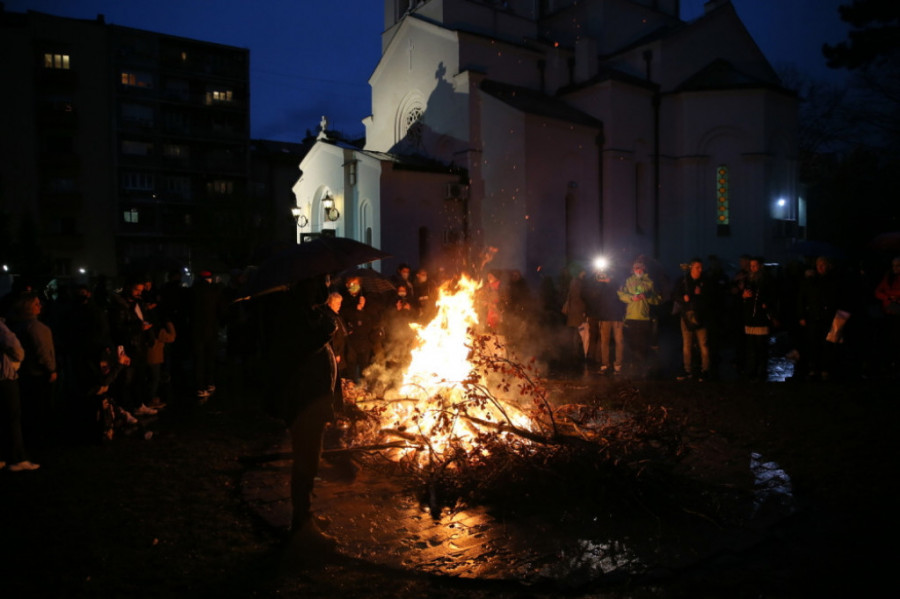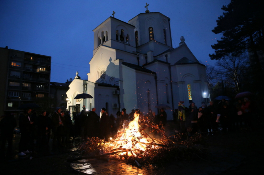Veliki broj vernika okupio se i u Kosovskoj Mitrovici ispred Crkve svetog Dimitrija, kako bi tradicionalno naložili badnjak.