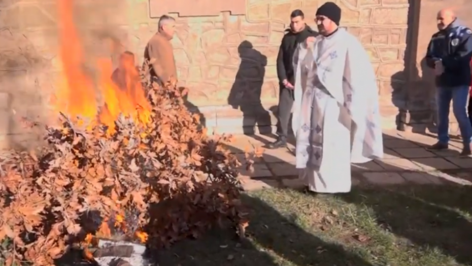 U prisustvu nekoliko desetina vernika, danas je u hramu Svetog Save u Južnoj Mitrovici služena sveta arhijerejska liturgija, a nakon tog je obavljeno paljenje badnjaka.