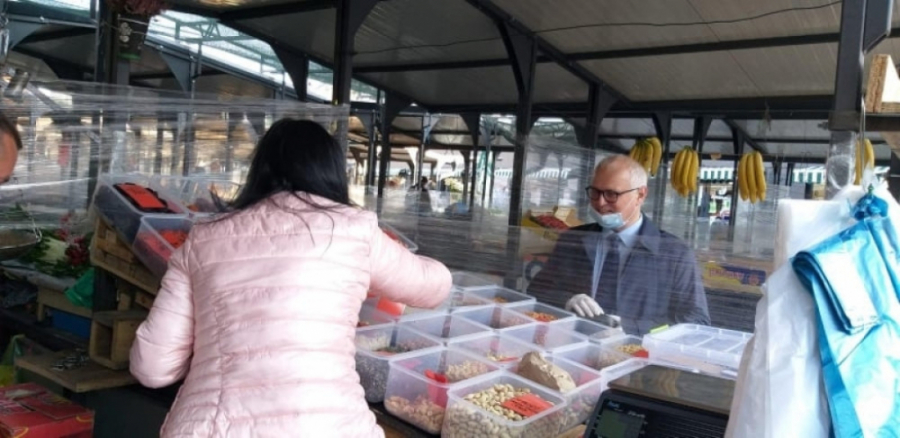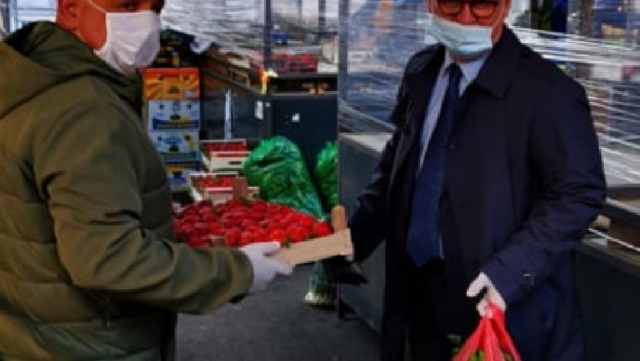 "Sve tezge su zaštićene folijama i ne sme da bude dodira između kupca i prodavca. Tako ih štitimo. Prodavci i kupci moraju da imaju maske i da drže socijalnu distancu od dva metra. Pored toga, pijace se dezinfikuju hlorom ujutro pre rada i uveče posle rada", rekao je Vesić.