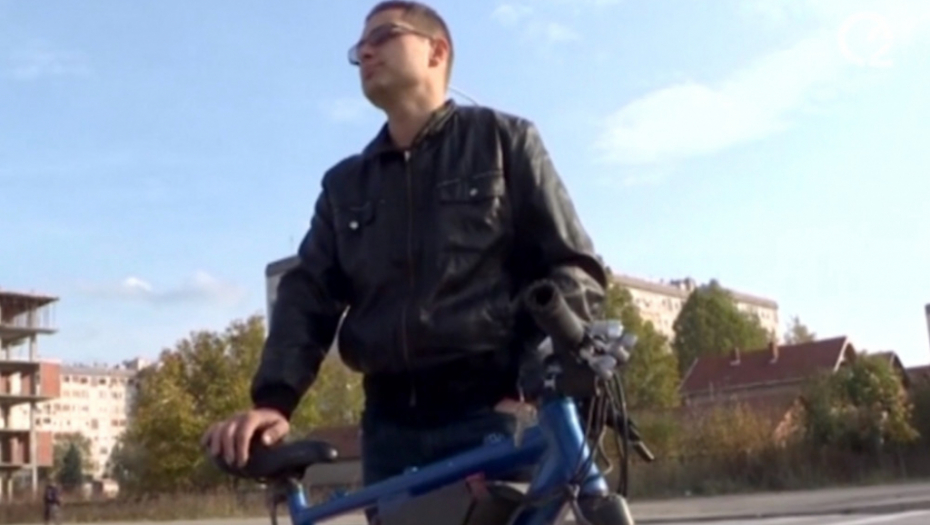 Neobičan bicikl provozao je juče dopisnik televizije Prva Bratislav Ilić.