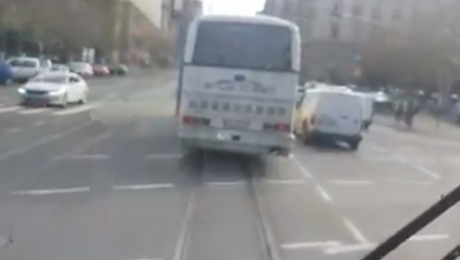 Autobus privatnog prevoznika napravio je tri prekršaja tokom prolaska Nemanjinom ulicom u Beogradu, kada je počeo da vozi po tramvajskoj baštici i to prošavši na crveno svetlo.