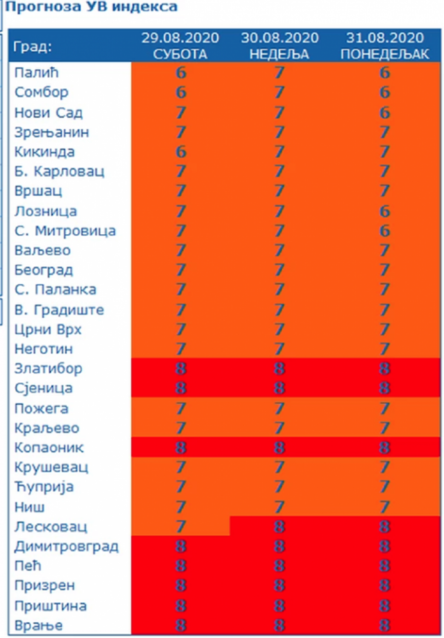 Sutra će biti jedan od najtoplijih letnjih dana, pa je moguće da će ovaj vikend moći da se proglasi i najtoplijim u 2020. godini. Već u ponedeljak oblaci će prekriti severne i zapadne delove zemlje (Subotica, Novi Sad, Čačak, Užice, Prijepolje...). Popodne i uveče u tim predelima moguć je razvoj lokalnih pljuskova sa grmljavinom, a u utorak će u celoj zemlji biti ispod 30 stepeni.