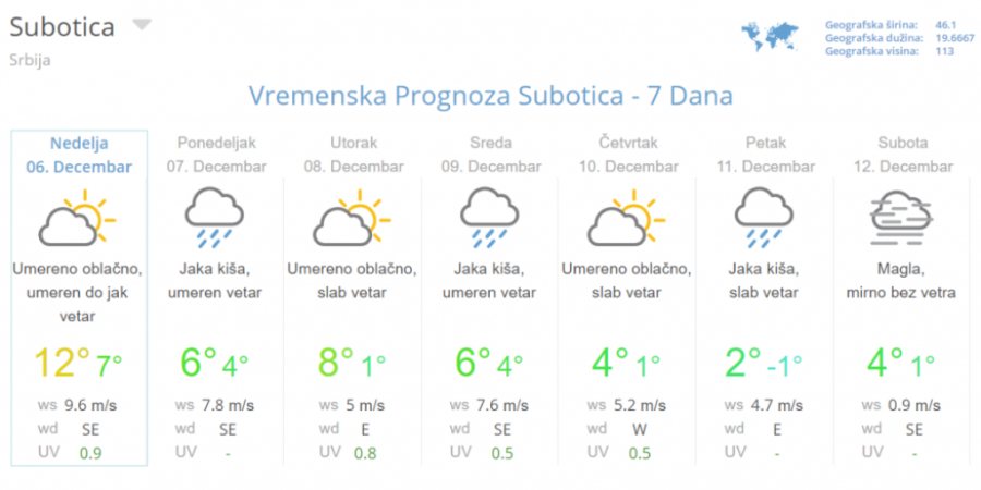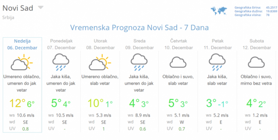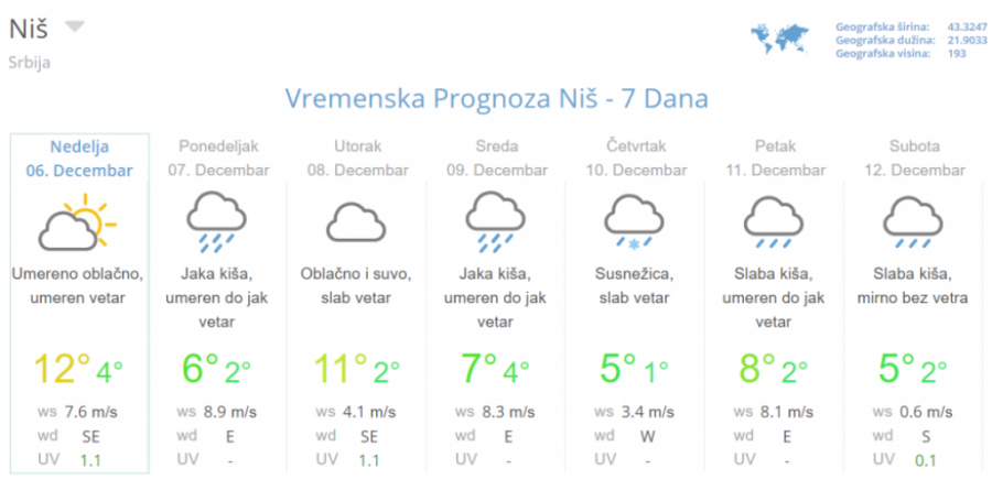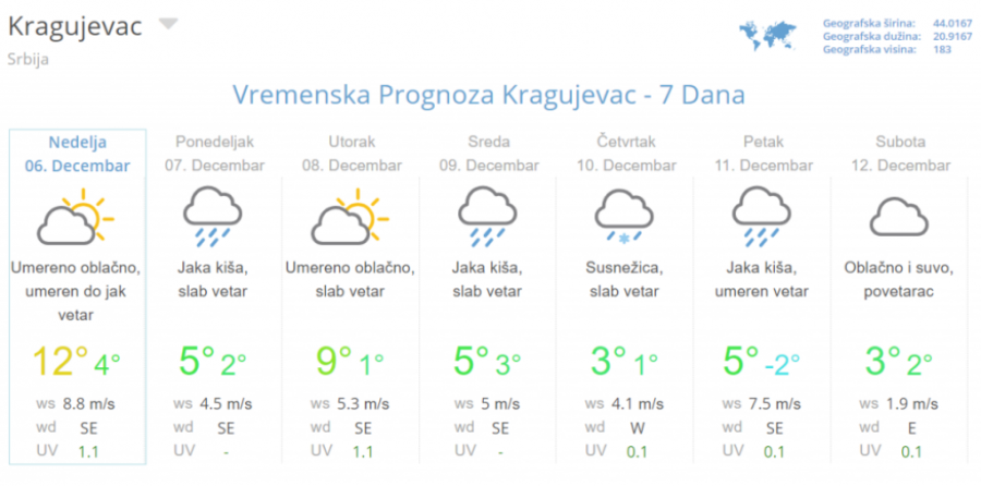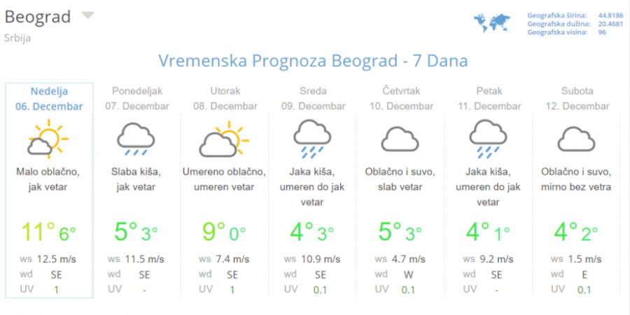 Tako da osim kiše planine regiona polako mogu računati na sve češći sneg, dok bi advekcijom hladnog vazduha preko košave nad istokom Srbije bilo uslova za pojavu ledene kiše ili snega. Dnevni maksimum sredinom nedelje od 3 do 6, a na istoku Srbije oko -1 stepen Celzijusa.
