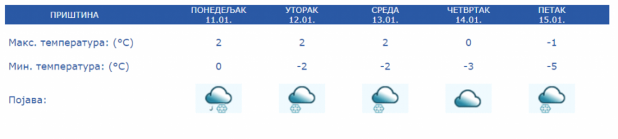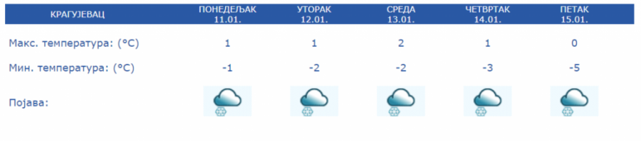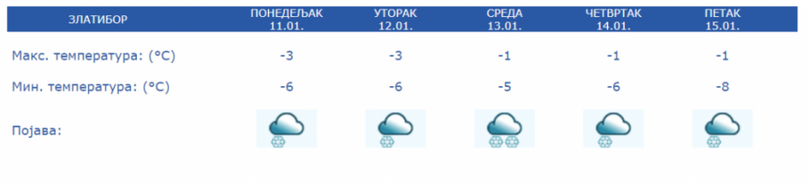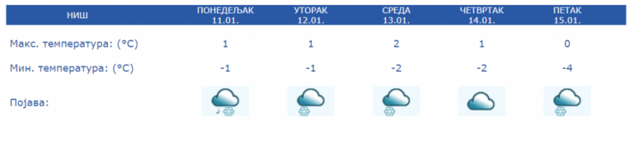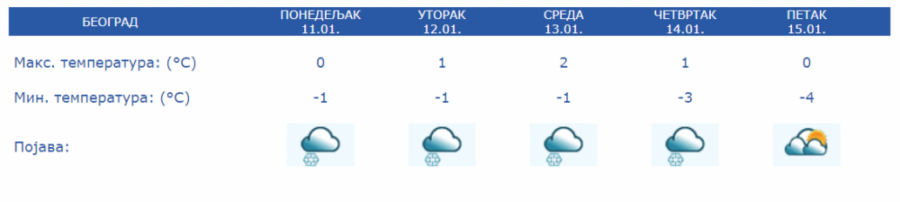 Sredinom nedelje suvo, jutra hladana uz maglu i mraz od -9 do -2 stepena Celzijusa, dok će dnevni maksimum biti o 0 do 4 te će sneg polako kopniti.
