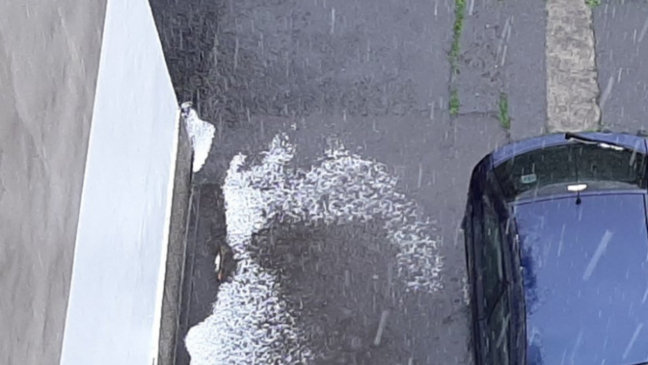 Obilna kiša i grad sručili su se oko 14 sati na Zrenjanin, a građani neprestano dele fotografije i snimke neverovatnog nevremena koje je ostavilo samo belinu za sobom.