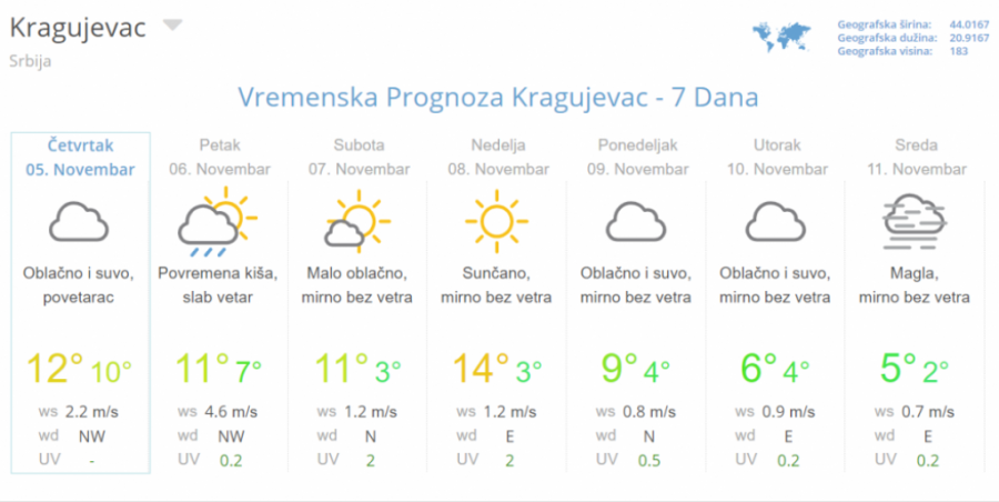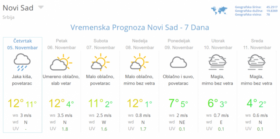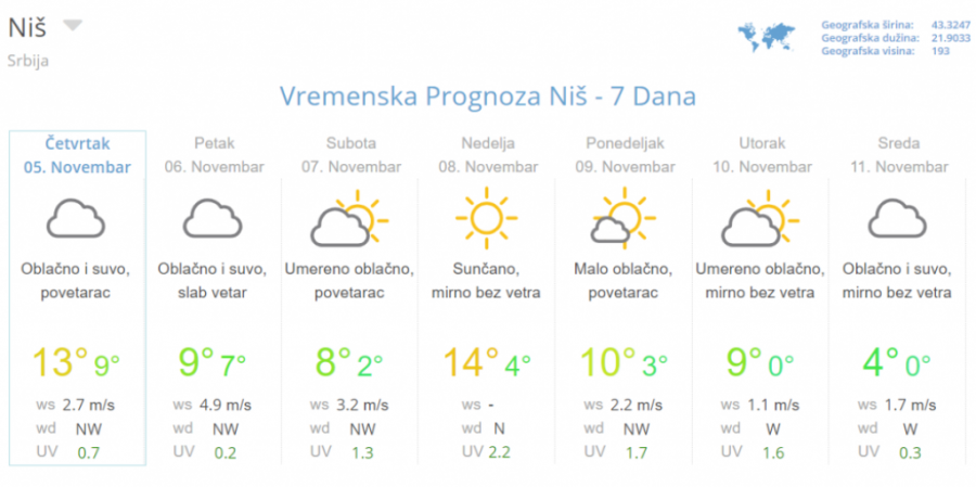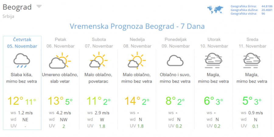 Prema narednom vikendu, uz jačanje anticiklona razvedravnje, ali uz pojavu vedrih i vrlo hladnih noći te će pojava mraza, posebno prizemnog biti sve češća, posebno van većih gradskih celina i uz slab vetar.