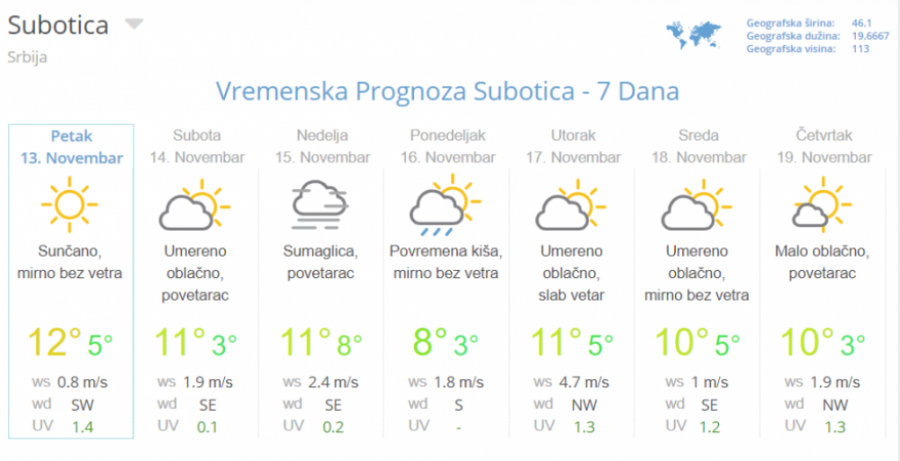 Prvo će u ponedeljak zbog jačanja vetra u višim slojevim atmosfere doći do razbijanja niskih oblaka te će maksimum na kratko ponege biti i oko 18 stepeni Celzijusa.