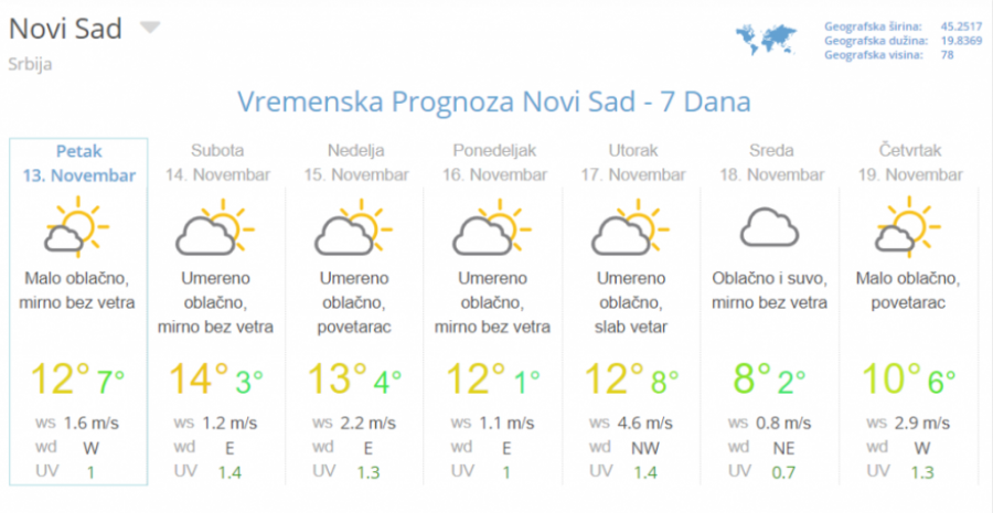 Noći i jutra će biti dosta hladni tako da se može očekivati nešto češća pojava jutarnjeg mraza, dok će dnevni maksimum u maglovitim predelima biti oko 9, a u predelima bez magle oko 14 stepeni Celzijusa.