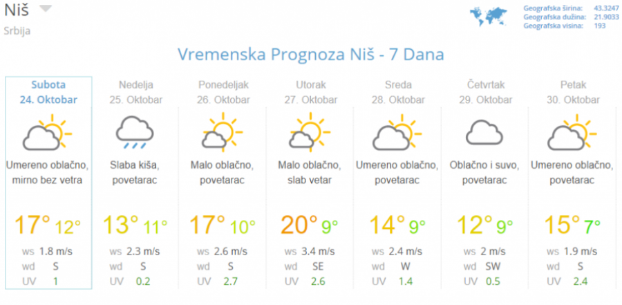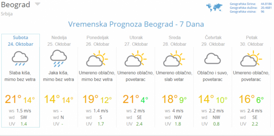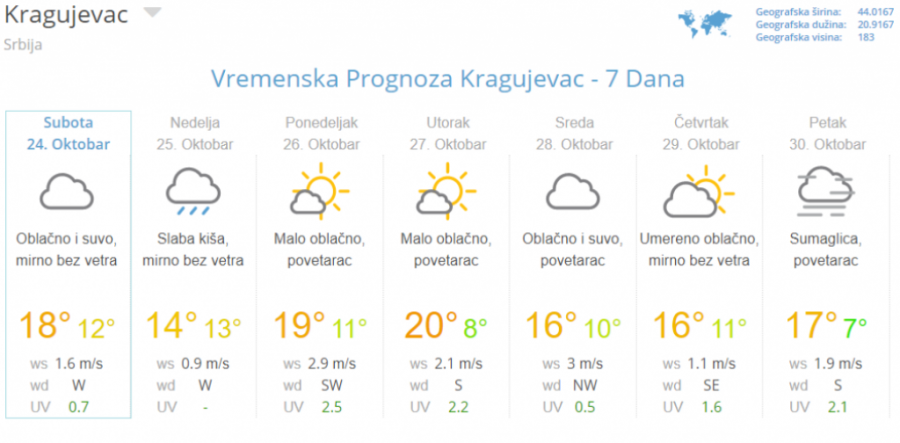 Od nedelje jutra sveža, ne i hladna uz pojavu lokalne magle, ali tokom dna sunčano i ponovo relativno toplo, posebno u utorak kada će maksimumi ponegde ponovo prelaziti i 20 stepeni Celzijusa.