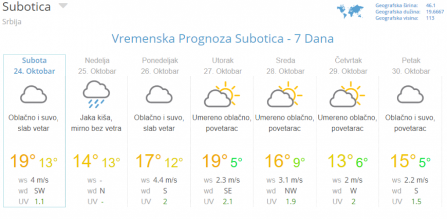 Oko 27. oktobra se računa na uticaj još jednog slabog ciklona uz naoblačenje i slabu kišu ponegde, dok se nešto konkretnije padavine za sada očekuju nad južnim delom regiona. Malo će zahladiti ali će temperature i dalje biti dosta visoke za tej deo godine.