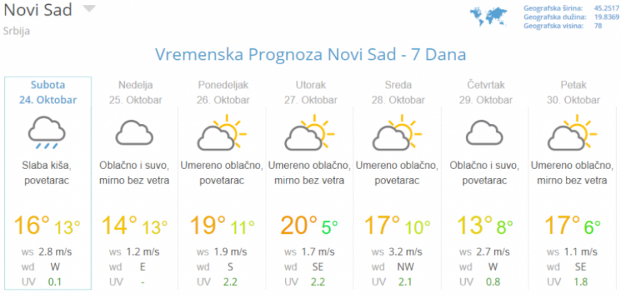 Dans još malo svežije uz maksimume od 9 do 16 stepeni Celzijusa, što je u okviru proseka za ovaj deo meseca.