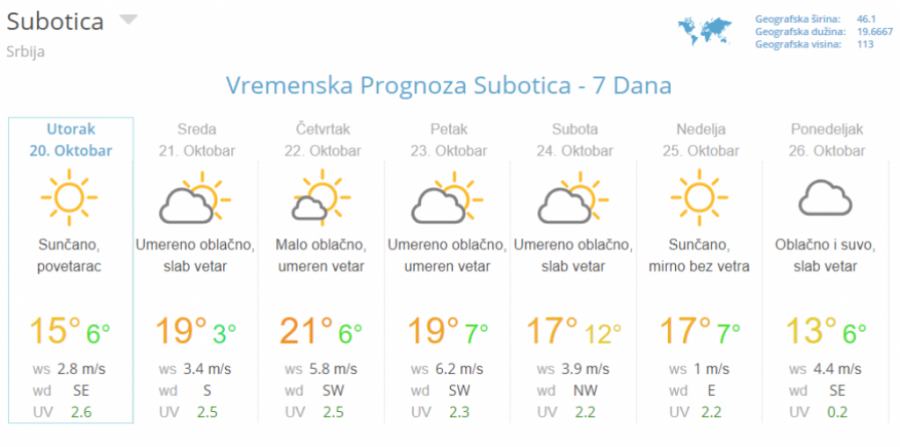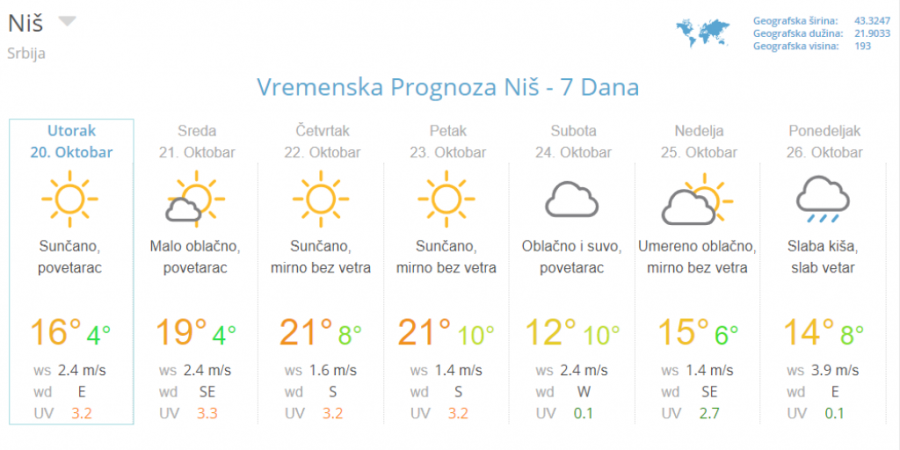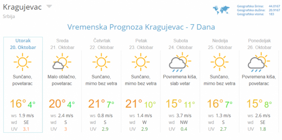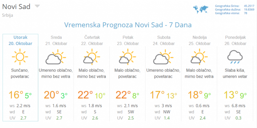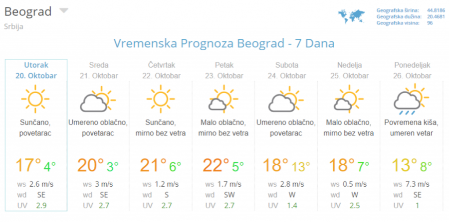 Predviđa se da će u narednih pet dana živa na termometru biti oko dvadesetok podeoka, a da će jutarnja temperatura biti nešto prijatnijih 10 stepeni.
