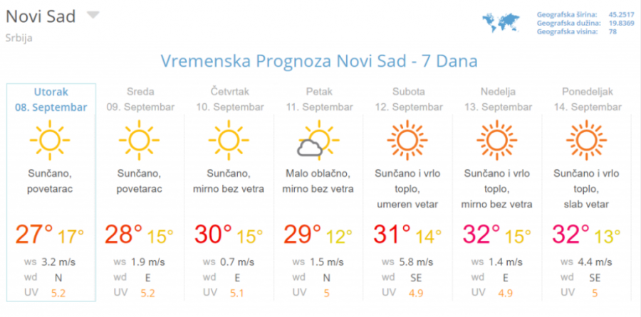 Zatim se oko 17. 9. ponovo računa na relativno toplo vreme uz maksimume često oko 29 stepeni Celzijusa, dok posle tog datuma na oba modela stoji signal za moguću konkretniju promenu, dok GFS u nekoliko poslednjih proračuna oko 19. 9. simulira i prvu konkretnu kišu u ovom mesecu.