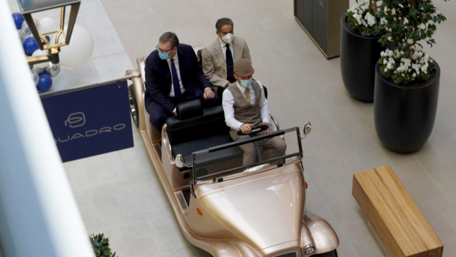 Predsednik je oduševljeno zagledao svaku radnju, enterijer same građevine, hodajući kroz njega, a onda je u jednom momentu, na iznenađenje novinara i svih prisutnih, seo u retro automobil i obilazak nastavio vozeći se kroz građevinu.