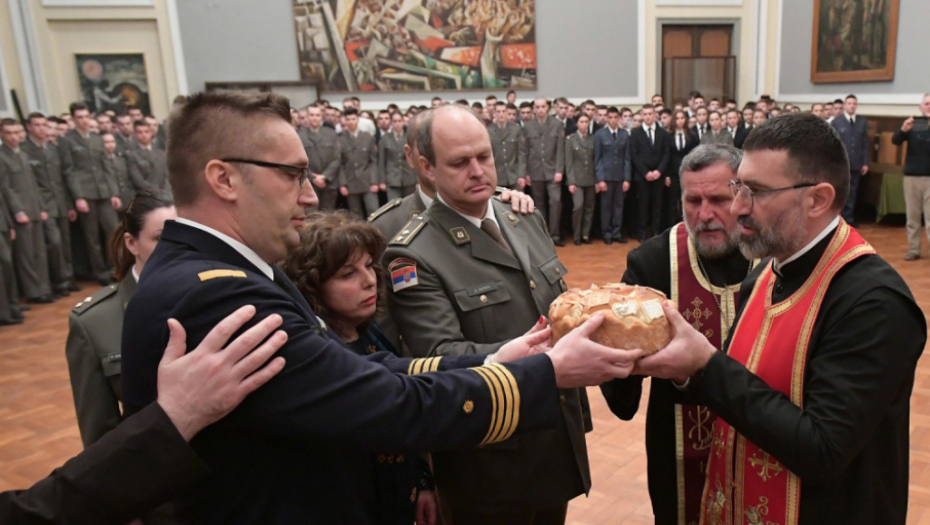 Posle obreda sečenja slavskog kolača, učenici Vojne gimnazije izveli su priredbu u okviru kulturno-umetničkog programa posvećenom školskoj slavi u čast Svetog Save.
