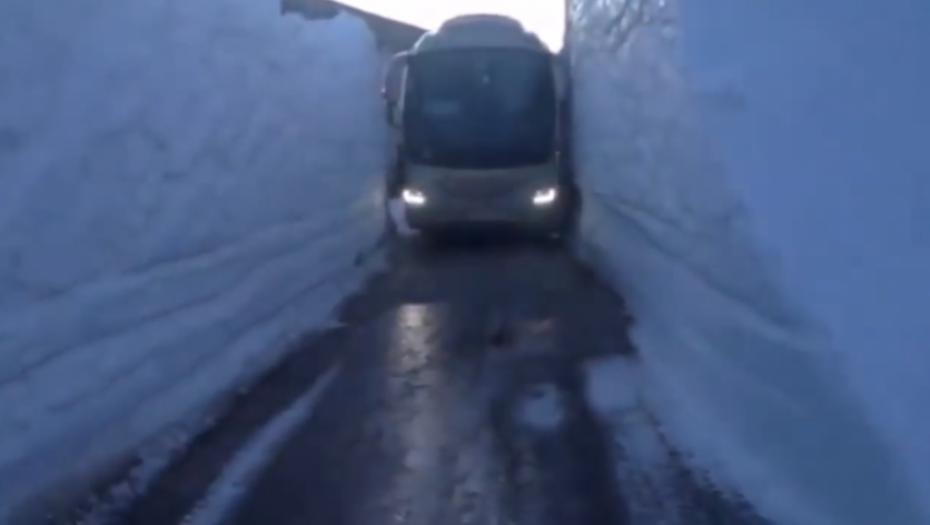 Put je raščišćavan, ali nedovoljno, pa je autobus Europabusa ostao zaglavljen. Policija je dolazila, pitala putnike da li im je toplo i otišla, a da, kako kažu putnici, nije dala informacije o tome kada će im stići pomoć.