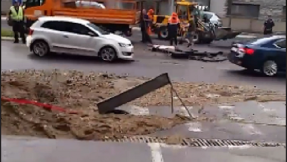Cela jedna traka Valjevske ulice na Čukarici nestala je u jučerašnjem nevremenu. Umesto asfalta tu sada zjapi ogromna rupa, prepuna komada betona, koji svakog časa preti da se dodatno obruši.
