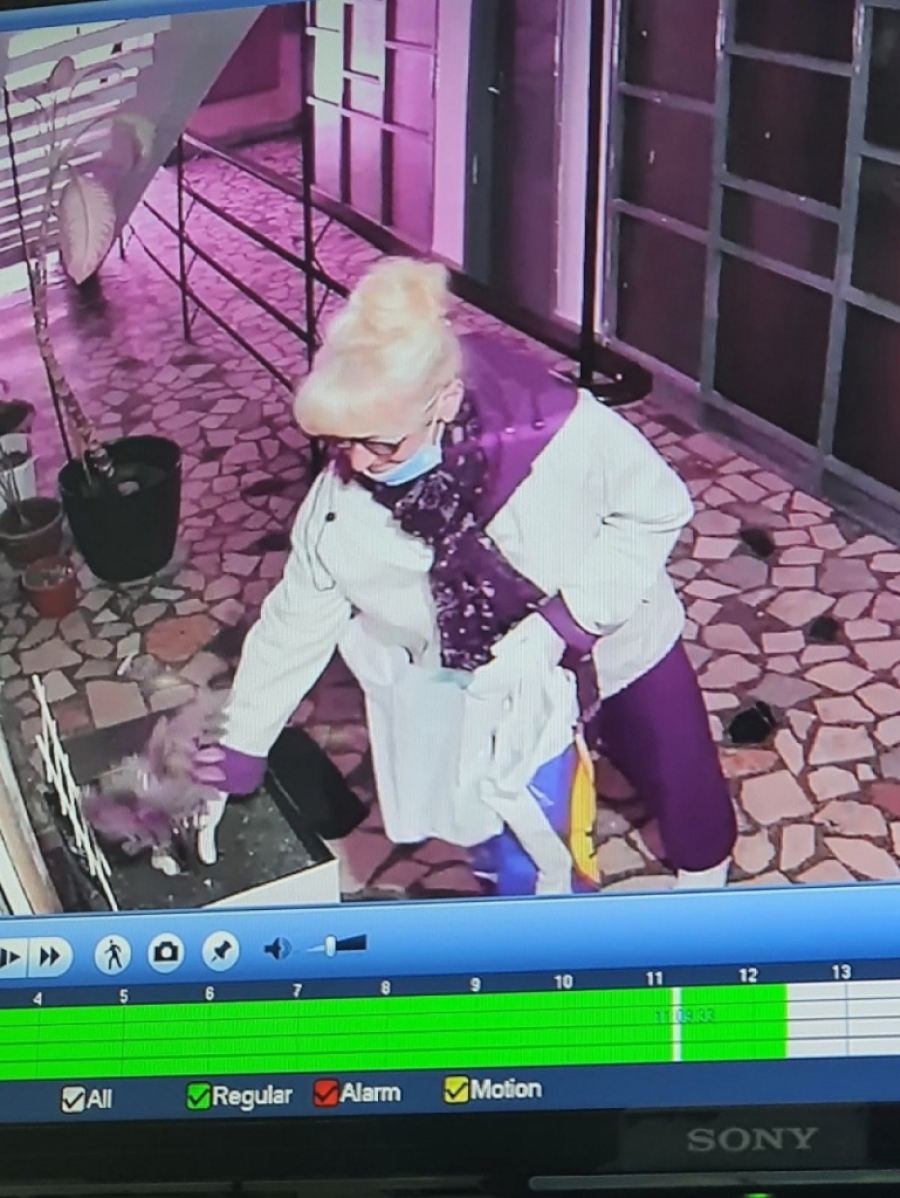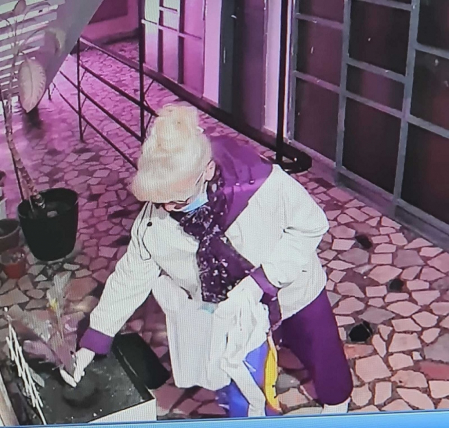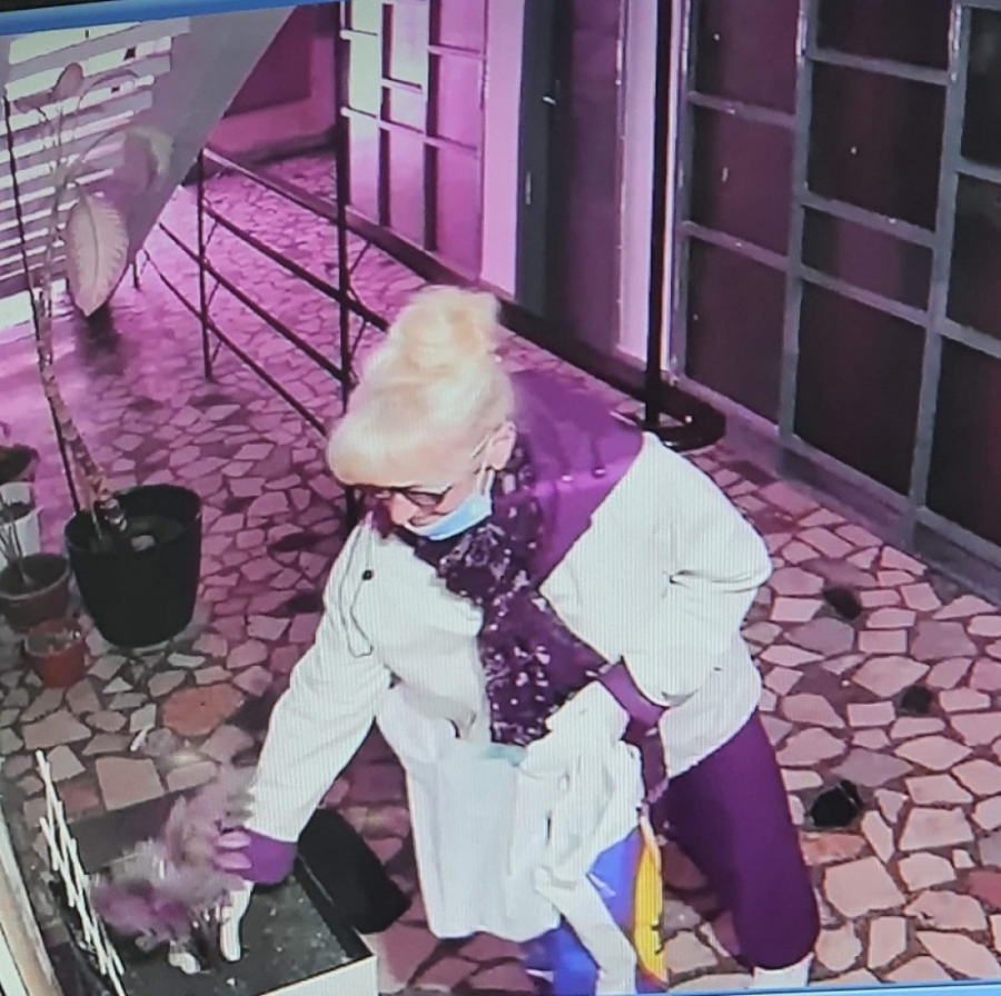 Žena koja je krala imala je hirušku masku na sebi, ali se jasno vidi da je reč o istoj osobi sa video snimka nastalog u jesen 2019. godine. Uz to je masku prilikom prilaska saksiji spustila, pa joj se lice jasno vidi.