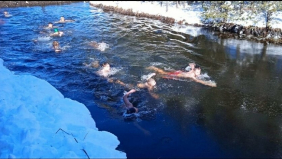 Kako je temperatura prethodnih dana bila izuzetno niska, meštani su u zaleđenoj vodi napravili mini jezerce i zaplivali do Časnog krsta.