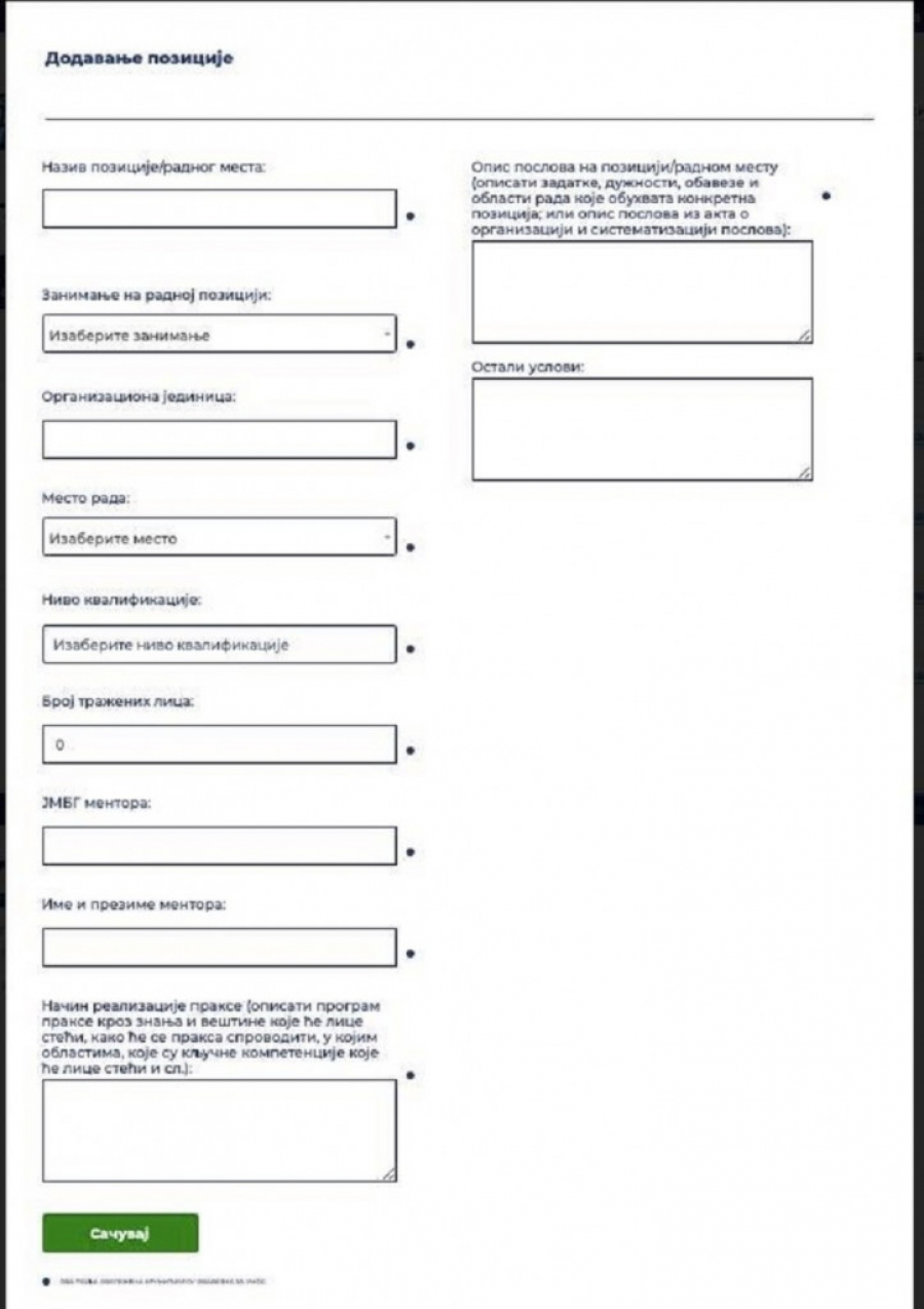 Poslodavac bi trebalo da unese opis radnih pozicija, poslova, radnih zadataka kao i ostalih uslova koje očekuje da kandidat ispuni.