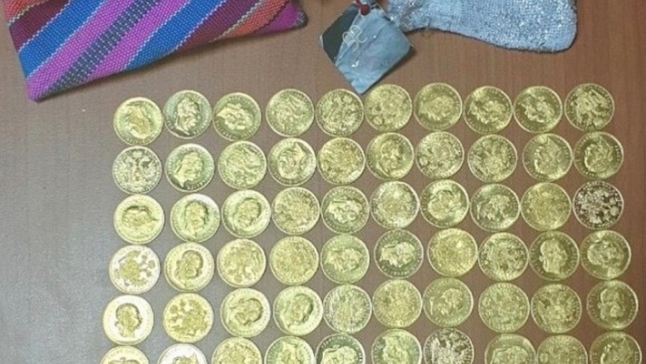 U ručnom prtljagu otkrivene su dve platnene torbice pune dukata sa likom austrijskog cara Franca Jozefa.