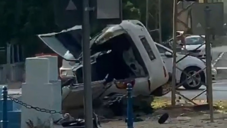 Fiat izleteo s puta, udario u autobus i banderu, potpuno je smrskan (VIDEO)