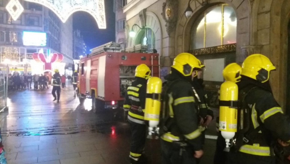 U centru Beograda prisutan je veliki broj vatrogasaca koji gasi požar u Knez Mihailovoj ulici.