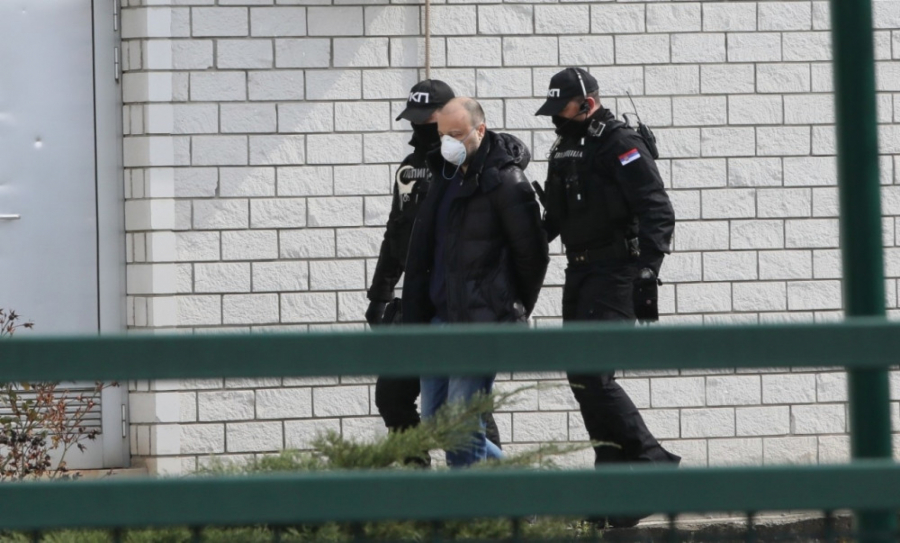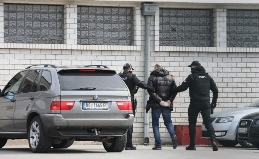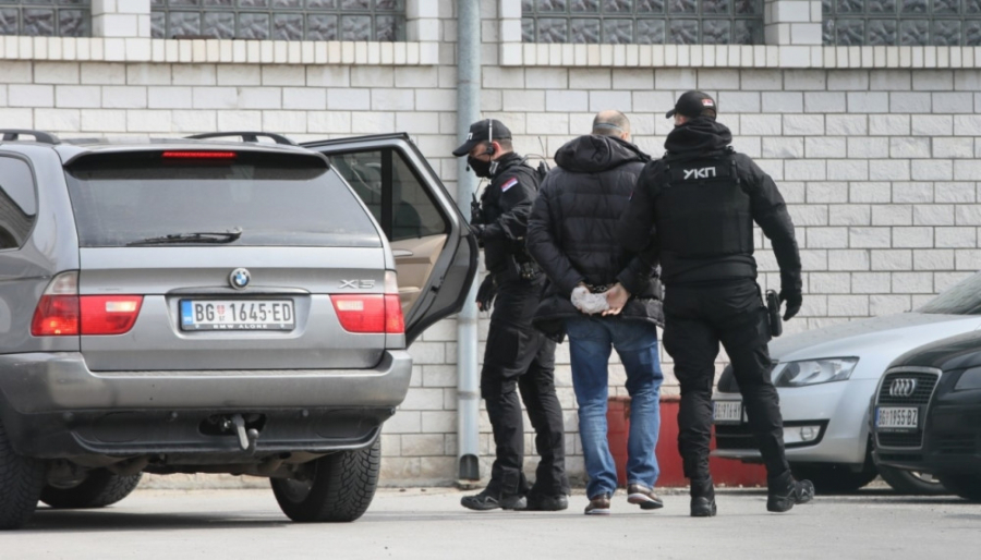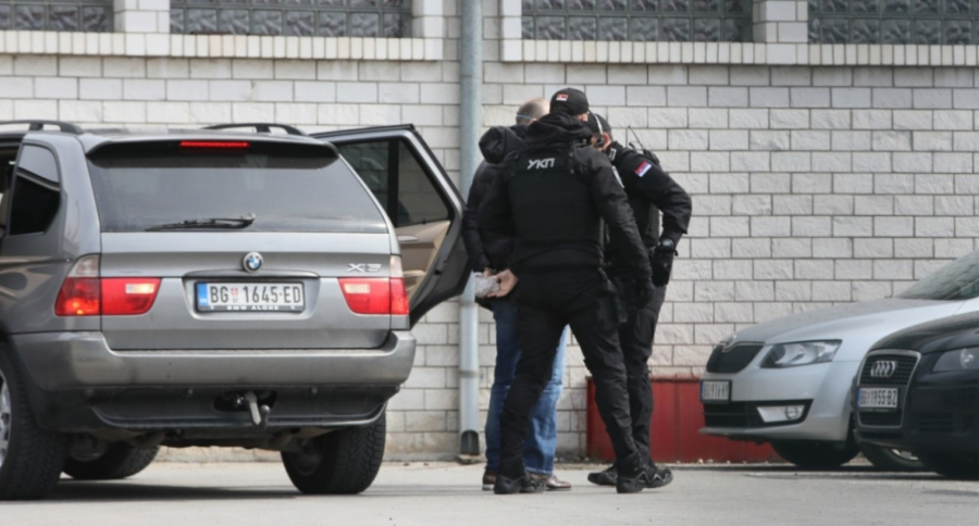Njega su na ispitivanje odveli pripadnici Uprave kriminalističke policije, a Miloš Tomić je priveden sa lisicama na rukama.