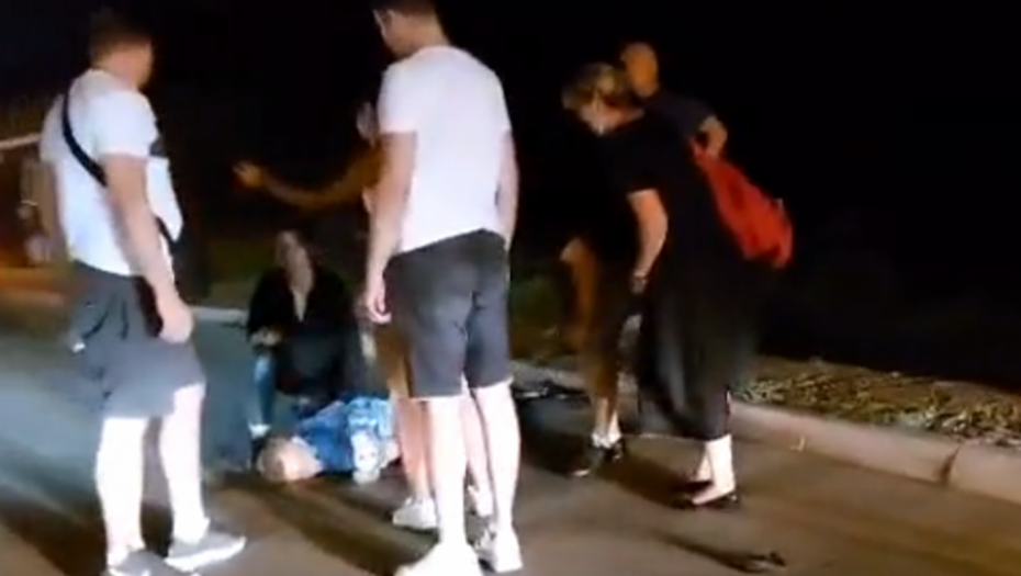 Nekoliko ljudi je okupljeno oko mladića, ali se ne zna u kakvom je stanju osim da nije pri svesti.