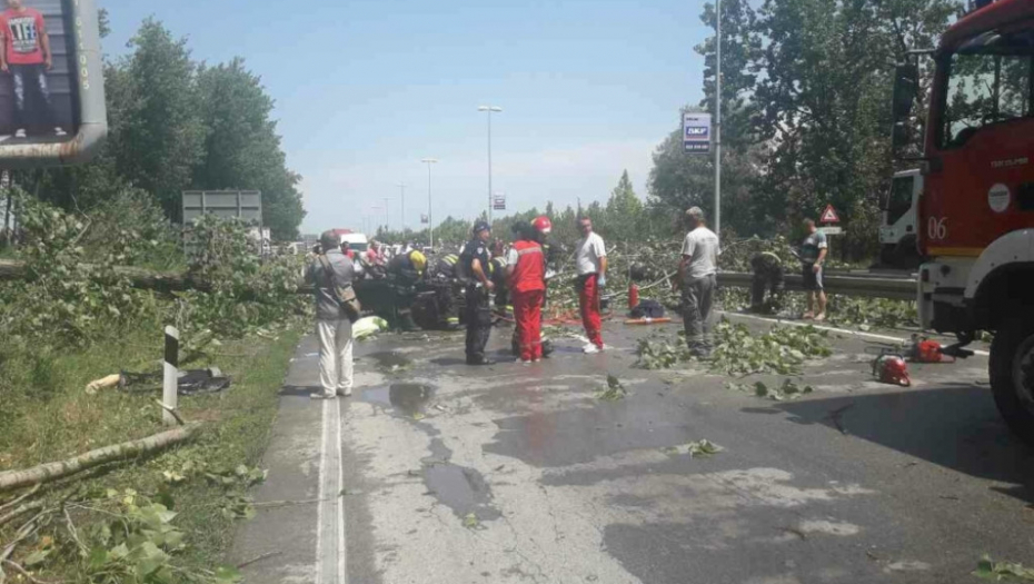 Kako saznajemo, na ulazu u grad iz pravca Zrenjanina kod Šangajske rasksrnice drvo je palo na automobil, a vatrogasci su izvukli povređene iz automobila. Prema rečima očevidaca oni su isekli automobil u kome je jedna žena stradala.