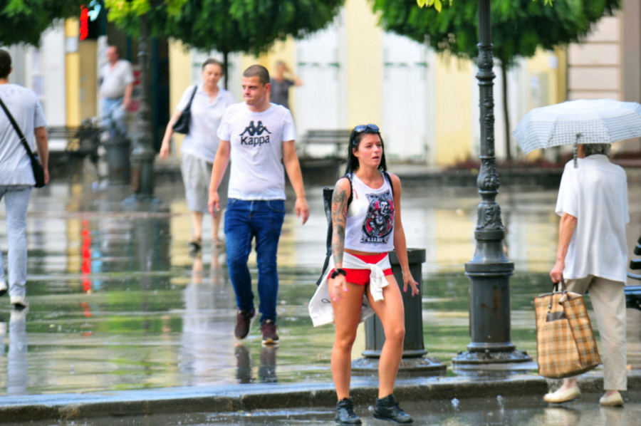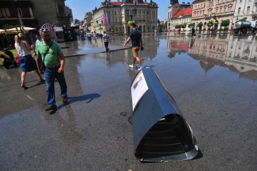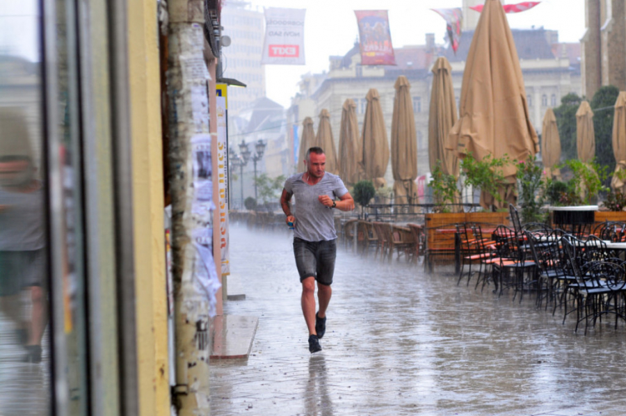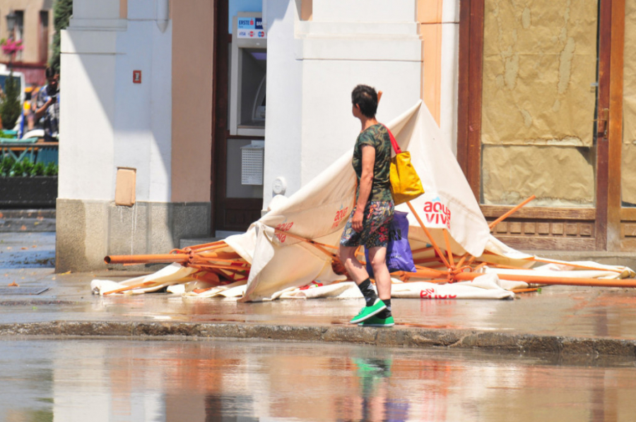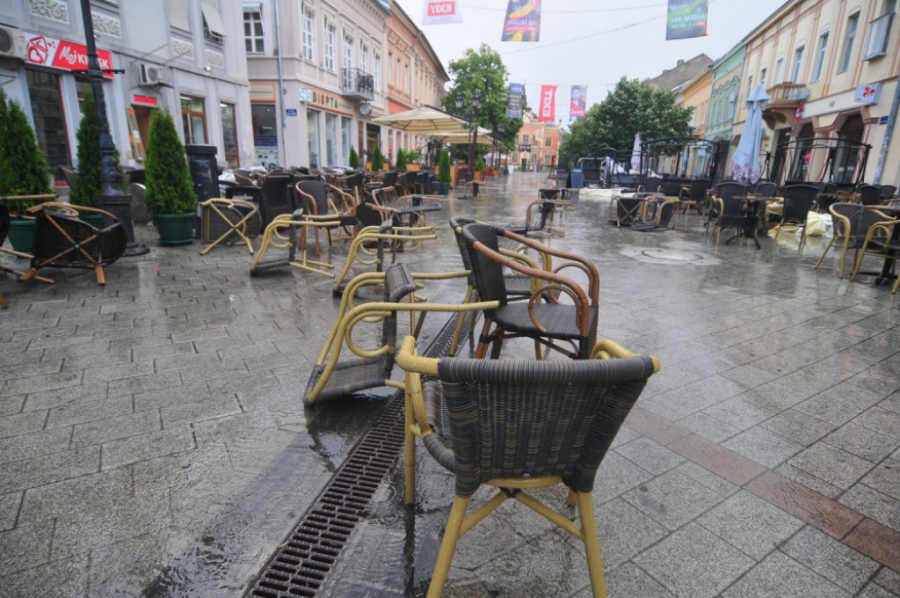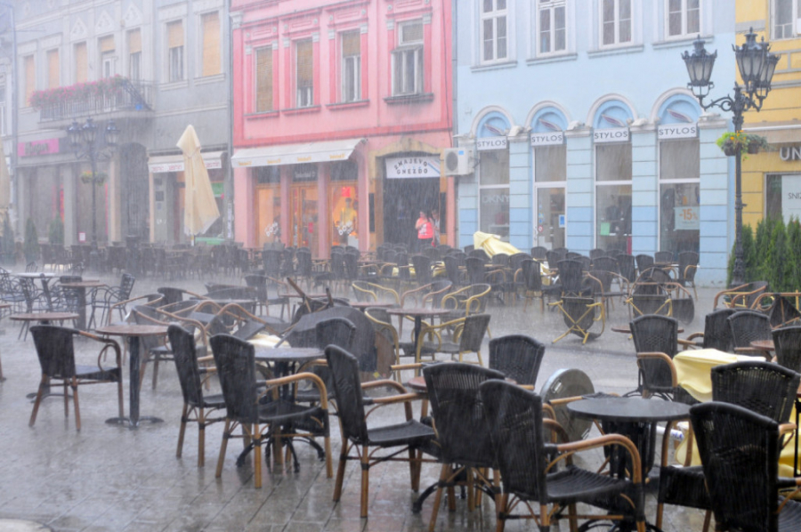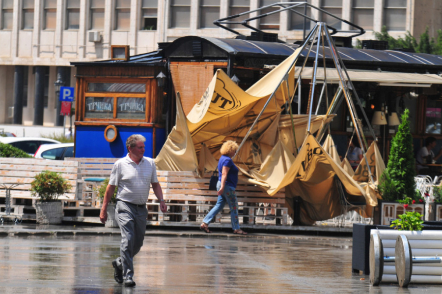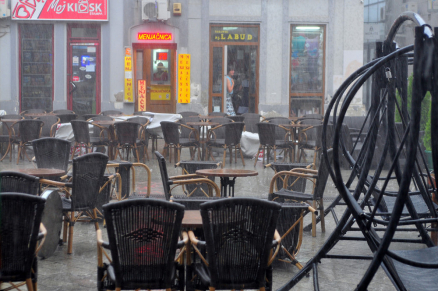 Pravi haos nastao je u centru grada, a vetar je nosio suncobrane, stolice i stolove iz bašti kafića u Zmaj Jovinoj ulici.