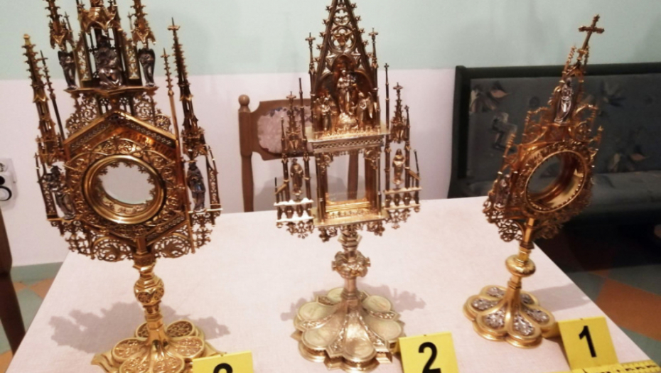 Pripadnici Ministarstva unutrašnjih poslova, Službe za borbu protiv organizovanog kriminala su, na području Kanjiže, pronašli tri skupocena religiozna predmeta koja su ukradena 2018. godine iz katoličke crkve u Beču i uhapsili S.B. (1954) zbog postojanja osnova sumnje da je izvršio krivično delo prikrivanje.