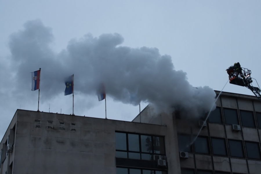 Požar je lokalizovan, nema povređenih, a vatrogasci trenutno pretražuju zgradu zbog velikog dima da još jednom provere da nema povređenih lica.