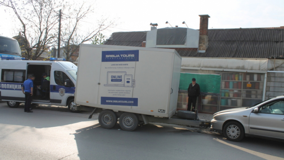 Neouobičajeni sudar se dogodio pred semaforom Ulice Kosovke devojke sa Somborskim bulevarom u Nišu. Kako nezvanično saznajemo, dok se autobus zaustavljao prikolica se otkačila i prestigla ga pa se njena ruda zarila u prednji deo purničkog automobila koji je dolazio iz surotnog smera.