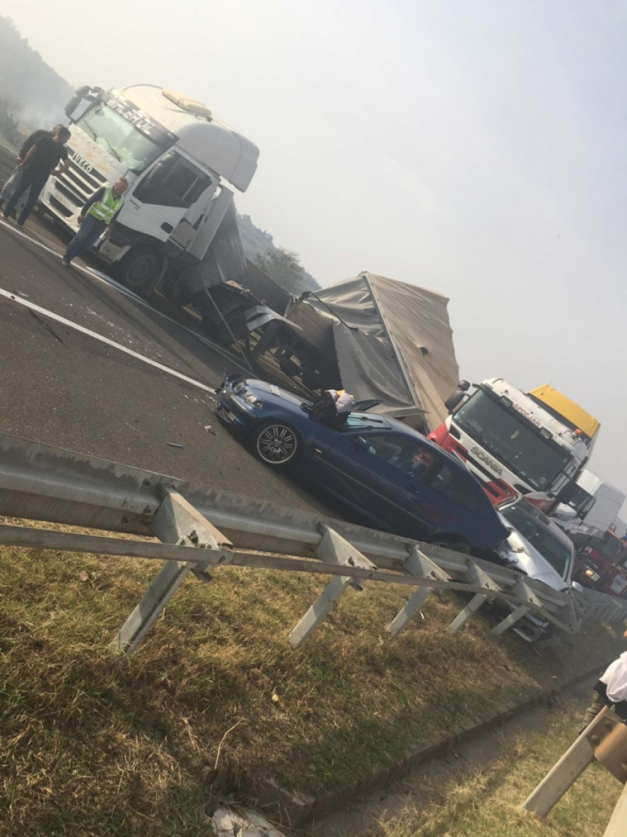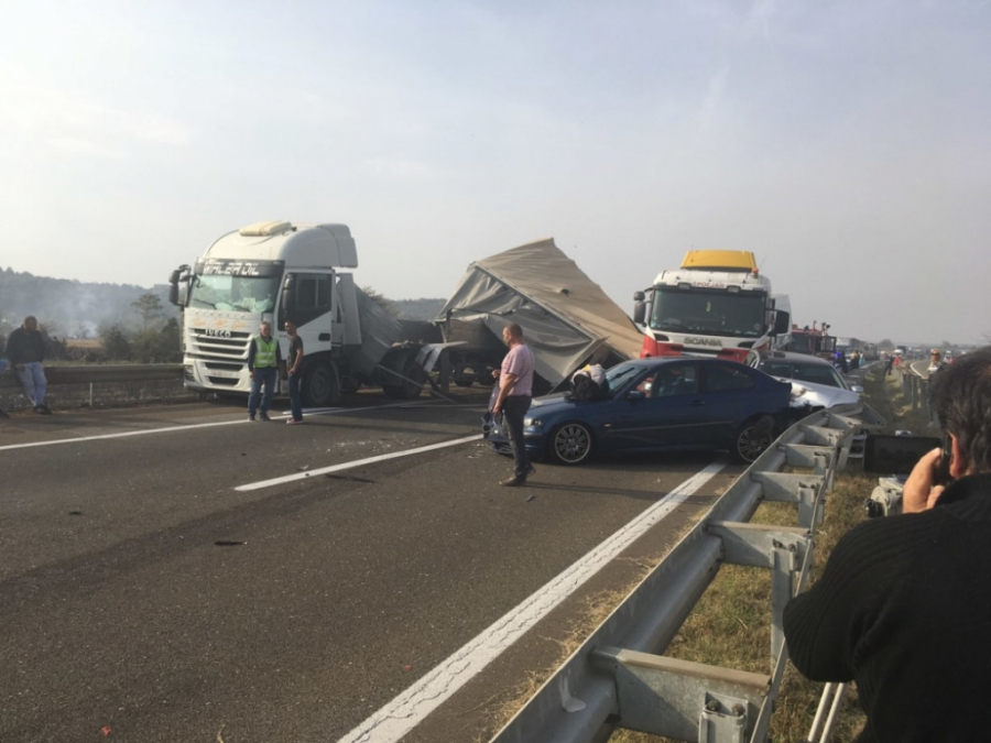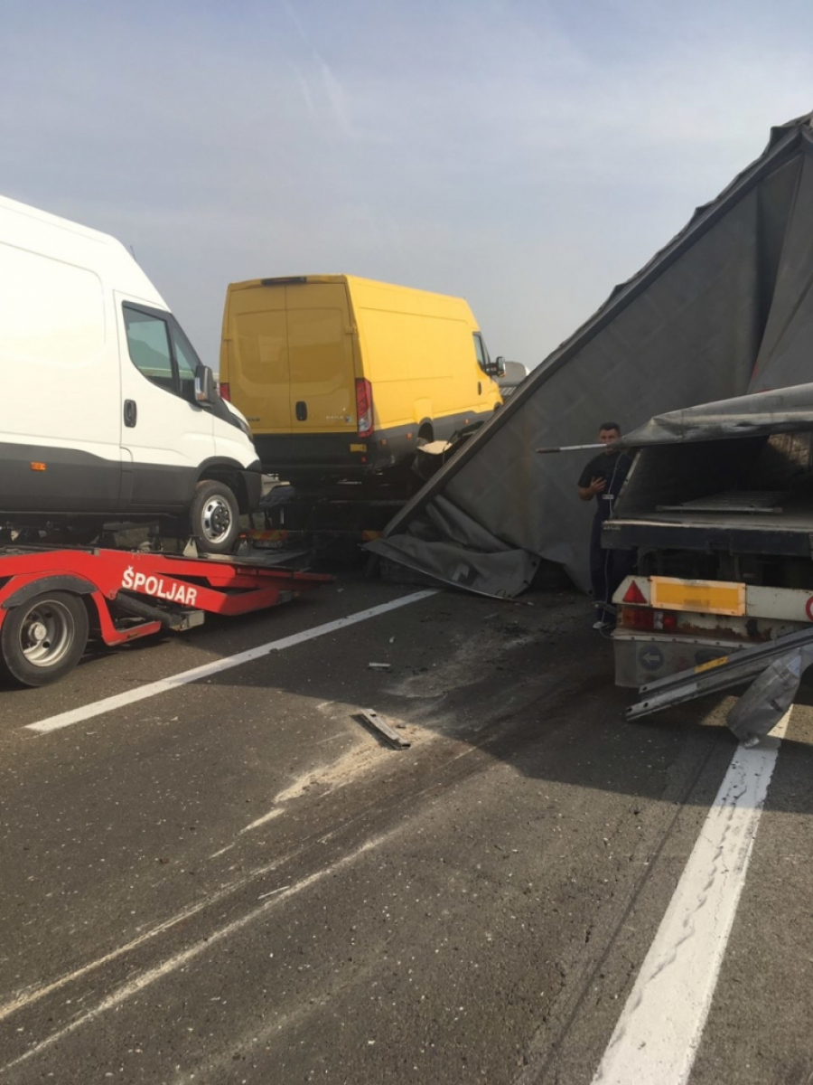 Prema saznanjima, na auto-putu se sudarilo šest vozila, tri kamiona, jedan kombi i dva putnička vozila.