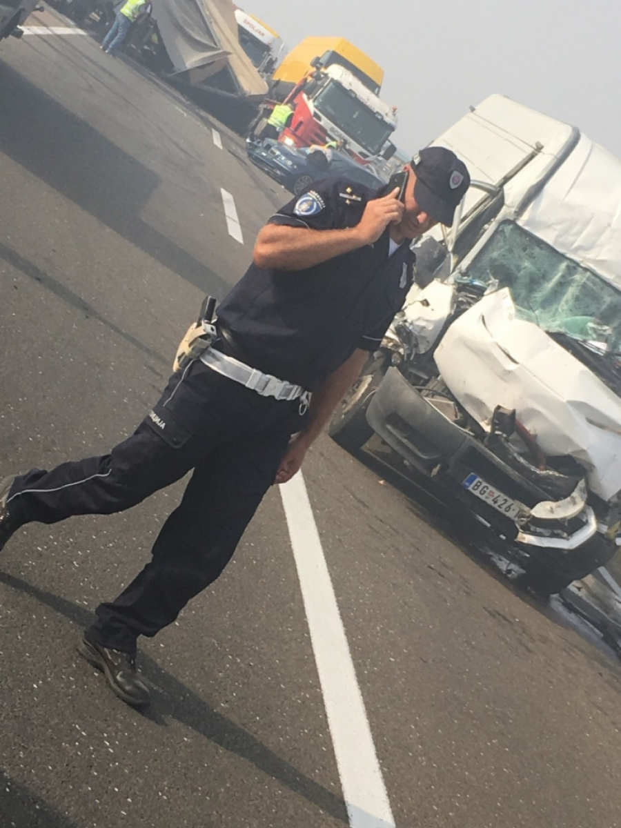 Do lančanog sudara je došlo zbog dima koji se nadvio nad putem jer je neko palio nisko rastinje na njivi pored auto-puta.