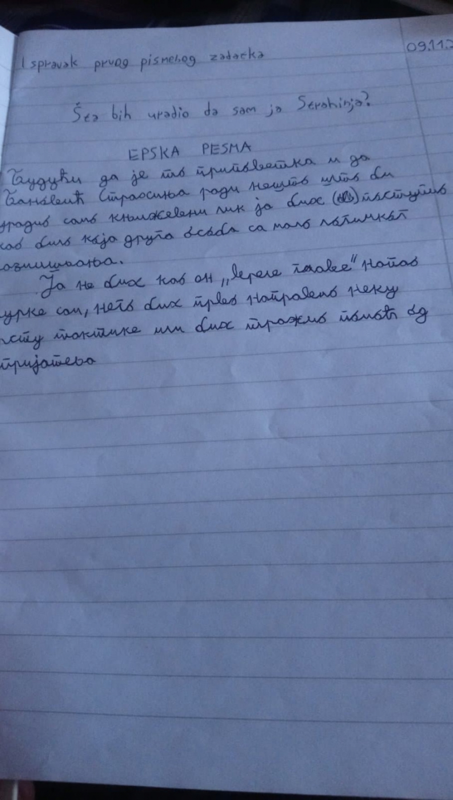 U razgovoru sa majkom Dragana Drljića, otkrila nam je i dečakov sastav čija je tema bila "Šta bih uradio da sam ja Strahinja?". Prenosimo deo teksta koji je Dragan napisao za pismeni iz srpskog jezika.