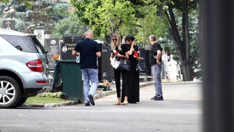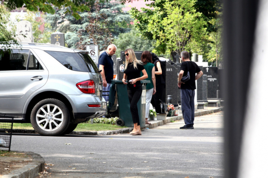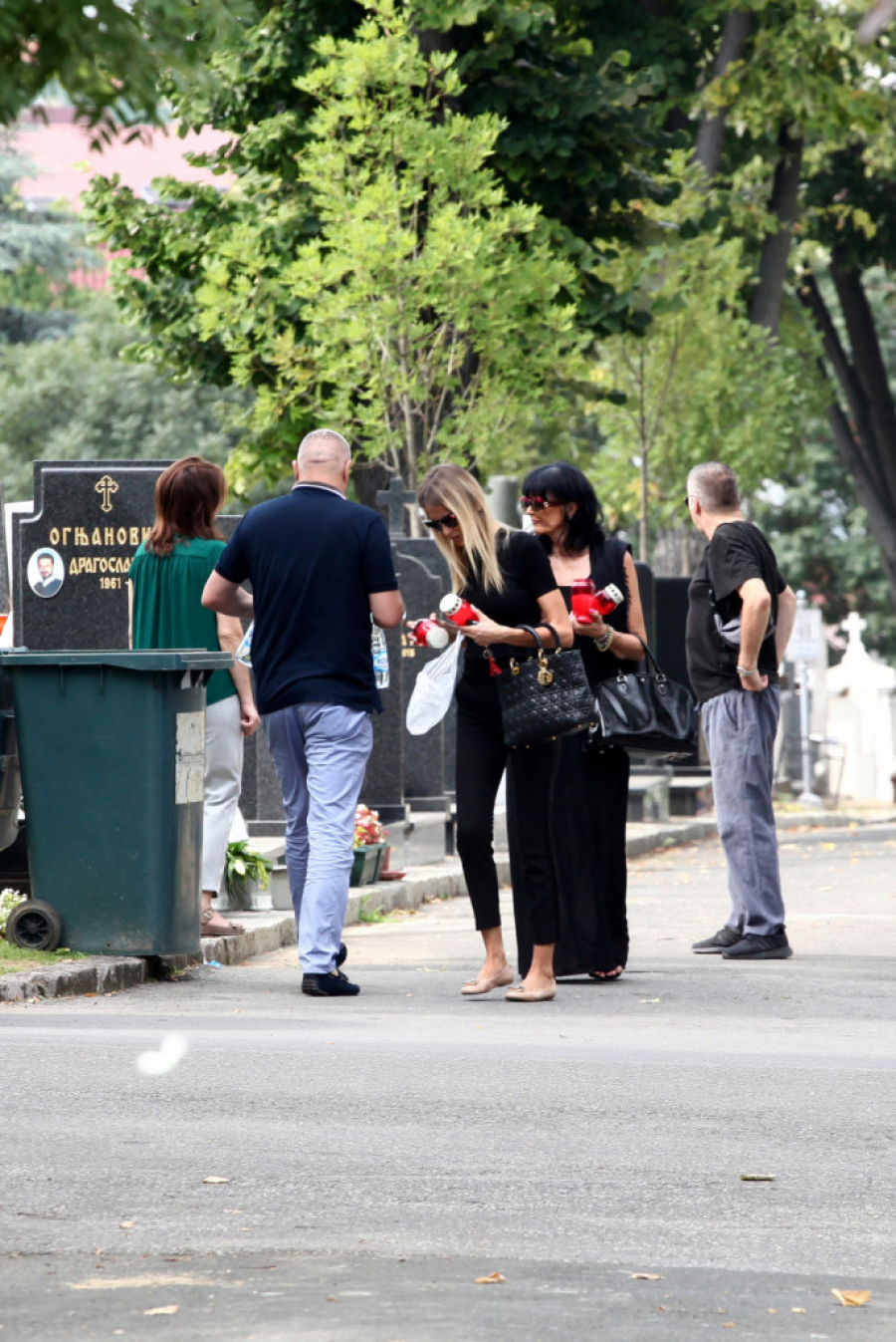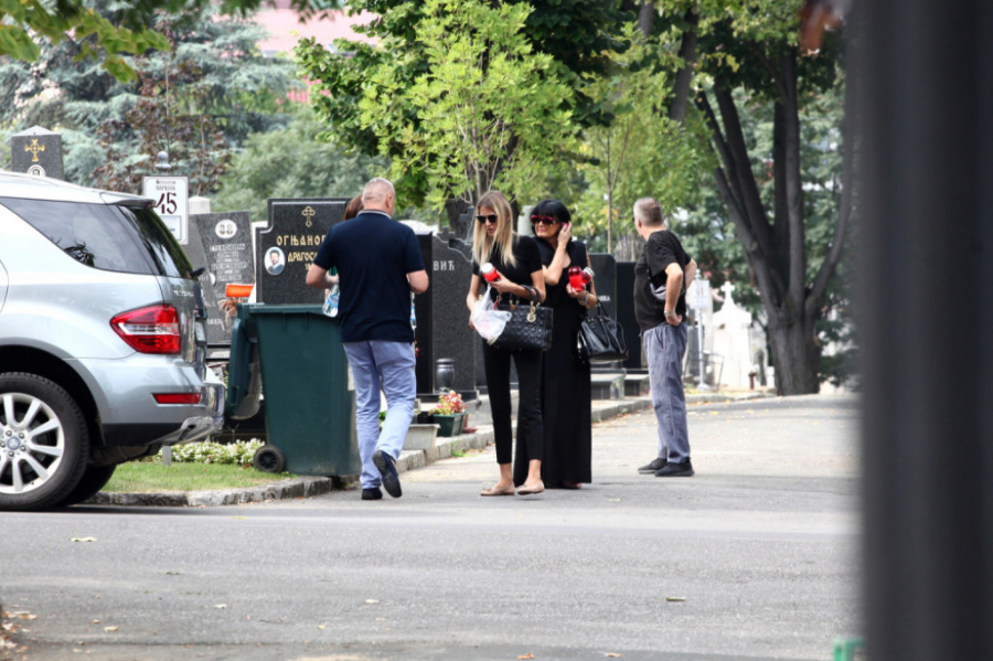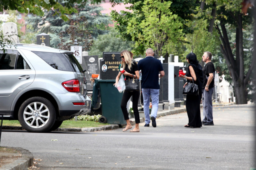 Buket crvenih ruža za voljenog supruga! Utučena, krijući lice iza tamnih naočara i u crnini, poznata manekenka Sanja Papić (35) došla je na Novo groblje na pomen svom suprugu, advokatu Dragoslavu Miši Ognjanoviću (57), koji je likvidiran pre tačno godinu dana na Novom Beogradu.