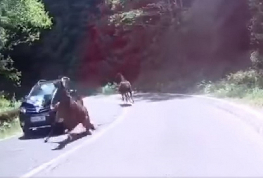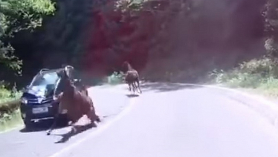 Dva konja izletela na magistralu, a onda je iza krivine naleteo automobil, prolomio se krik koji slama srca (UZNEMIRUJUĆI VIDEO)