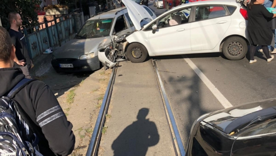 Naime, do sudara je došlo pre skretanja za Ustaničku ulicu, a saobraćaj je u potpunom kolapsu i čeka se da automobili budu uklonjeni sa tramvajskih šina.