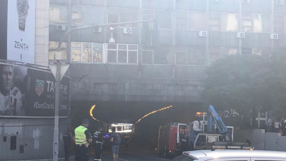 Automobil je planuo na samom ulazu u tunel, a vatrogasne ekipe su na terenu.
