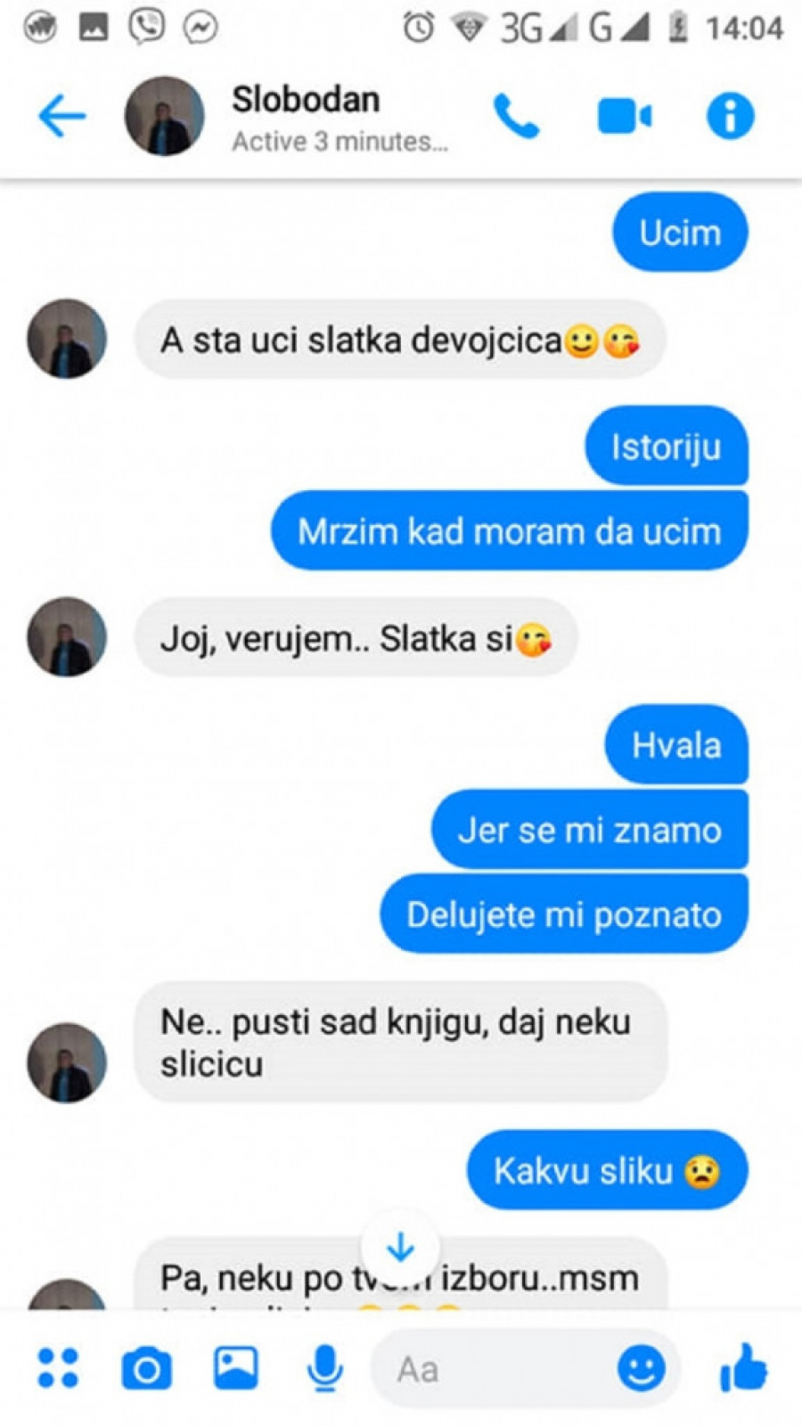 Počelo je s naizgled bezazlenim porukama, u kojima joj je govorio da "ostavi knjigu i da mu da neku sličicu" i da mnogo želi da se upoznaju.