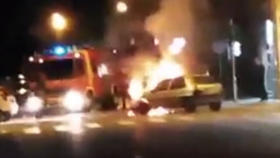 Sinoć oko 21.15 časova, na uglu ulica Žarka Zrenjanina i Žarka Fogaraša u Pančevu, dogodio se sudar dva putnička autombila nakon čega je jedan od njih planuo. Jedan od vozača koji su se našli u blizini, a nije učestvovao u udesu, bezuspešno je pokušao aparatom za gašenje požara da ugasi vatru.