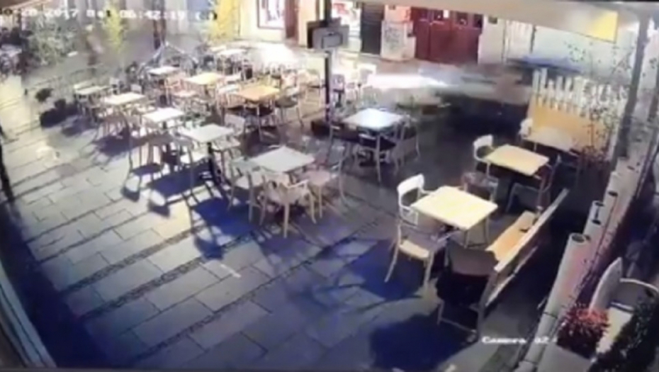 Na snimku se vidi trenutak kada je muškarac kolima povredio devojku koja je radila u jednom od kafića u Knezu, čija je bašta uništena, posle divljanja muškarca koji je bio u alkoholisanom stanju.