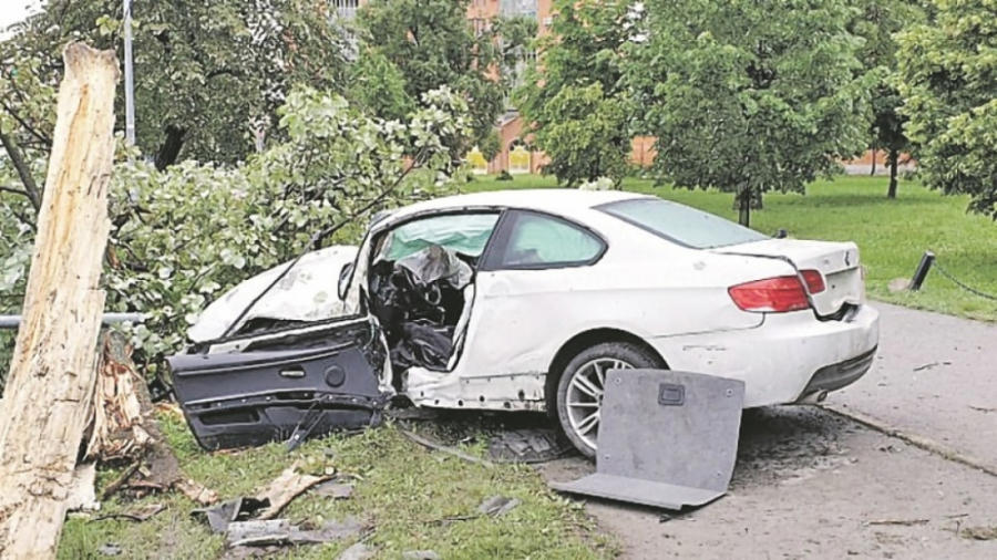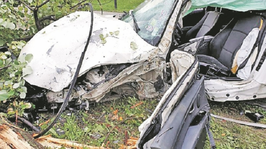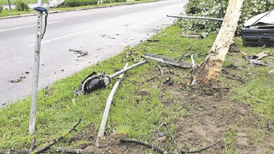 Na mestu teške saobraćajne nezgode bio je jeziv prizor. Beli BMW je potpuno smrskan stajao pored puta, delovi su bili rasuti metrima unaokolo, dok su prepolovljena bandera, odsečeno stablo i saobraćajni znak ledili krv u žilama.